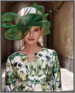 Ensemble pantalon top et veste très chic et tendance en imprimé vert. Chapeau vendu séparément.