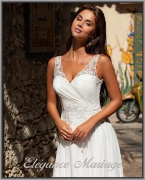 Robe de mariée petit prix, qui n’en reste pas moins pleine de charme et d’élégance.